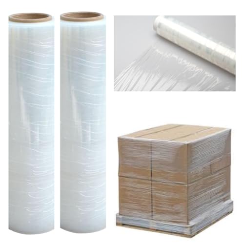2 rullar genomskinlig lastpall wrap stretchfilm krympomslag, stark och säker förpackning plast fästfilm, fukt och vattentät, perfekt för paketförpackning, flytthus och möbler, 20 mikron 400 mm x 250 m