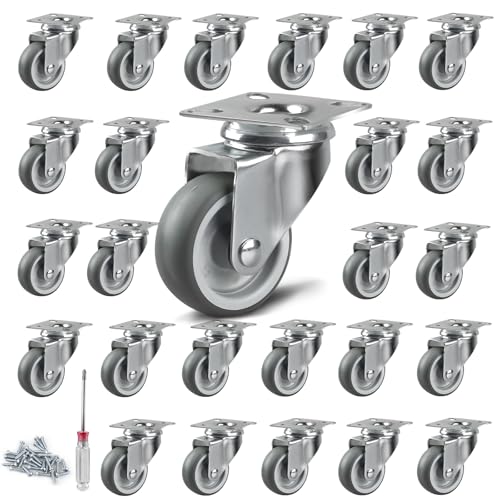 lalago Transporthjul i 24-pack, 50 mm-möbelhjul med svängplatta, maxvikt 50 kg per hjul, små hjul för lastpallar, möbler, skåp och annat, skruvmejsel och skruvar ingår