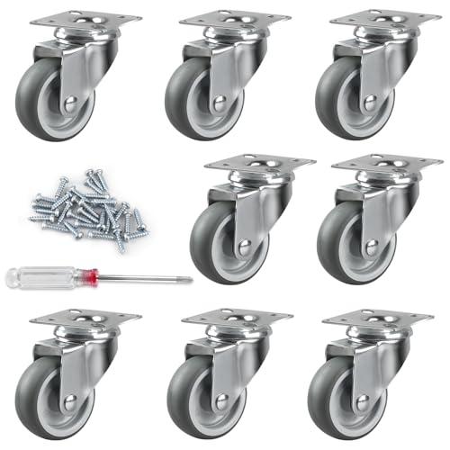 lalago Transporthjul i 8-pack, 50 mm-möbelhjul med svängplatta, maxvikt 50 kg per hjul, små hjul för lastpallar, möbler, skåp och annat, skruvmejsel och skruvar ingår