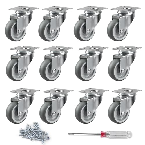 lalago Transporthjul i 12-pack, 50 mm-möbelhjul med svängplatta, maxvikt 50 kg per hjul, små hjul för lastpallar, möbler, skåp och annat, skruvmejsel och skruvar ingår