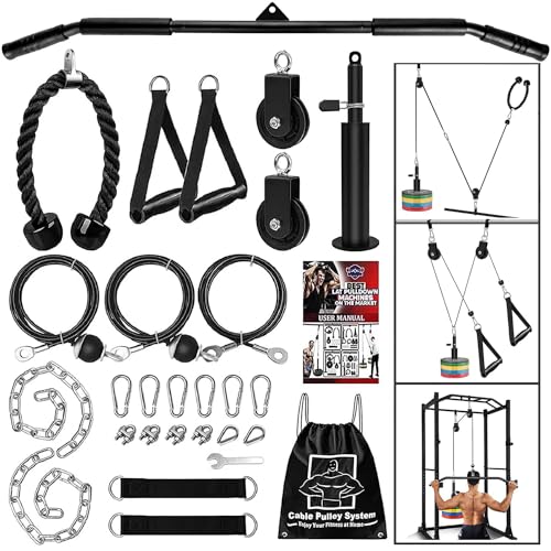 Taeku Tränings- och dragsystem för LAT Pull Down Biceps Curl Triceps armträning viktskivsystem extra enheter för gör-det-själv gym (2 kedjor + 102 cm bar)