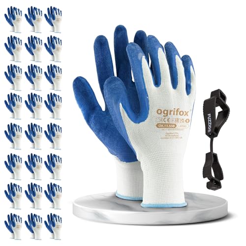 FUZZIO 24 par Ogrifox latex översiktliga arbetshandskar handskar klämmor (L-9, vit)