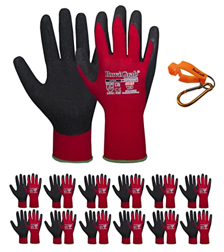 Ruvigrab - Latex arbetshandske | Halkfria handskar | Trädgårdshandskar | Handskar för industri, byggnad eller jordbruk | Arbetshandske man och kvinna | 12 Par | Storlek 7