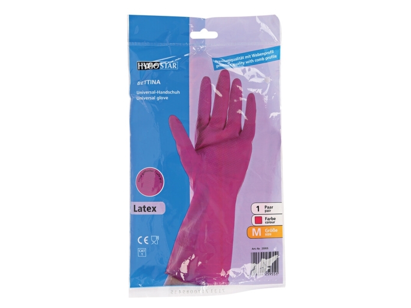Unigloves Unicare UGHG3003P hushållshandskar – puderfria, återanvändbara latexhandskar, paket med 2 par, rosa, medium