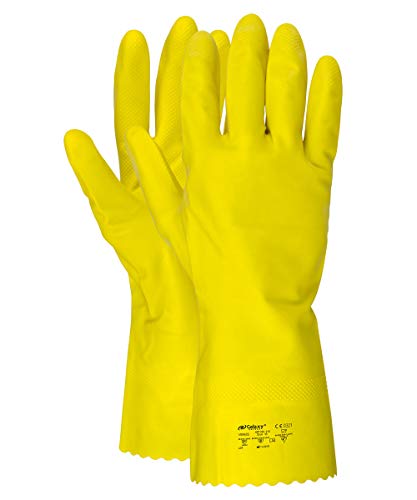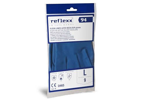 Reflexx R94/M återanvändbara tvåfärgade Felpati Gr 80 latexhandskar (M), gul/blå, 1 par (storlek M)