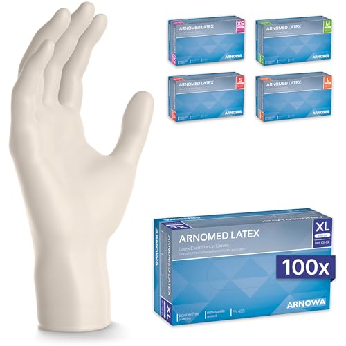 ARNOMED Latex engångshandskar XL, vita, puderfria, 100 st/ask, engångshandskar i latex, latexhandskar finns i storlekarna XS, S, M, L & XL.
