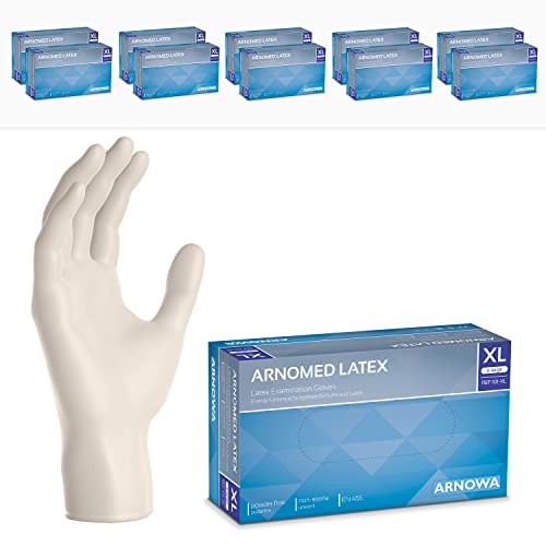 ARNOMED Latex engångshandskar XL, vita, puderfria, 1000 st/ask, engångshandskar, engångshandskar i latex, latexhandskar finns i storlekarna XS, S, M, L & XL.