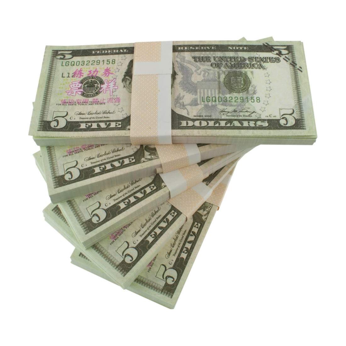 Låtsaspengar - 5 Amerikanska dollar (100 sedlar)