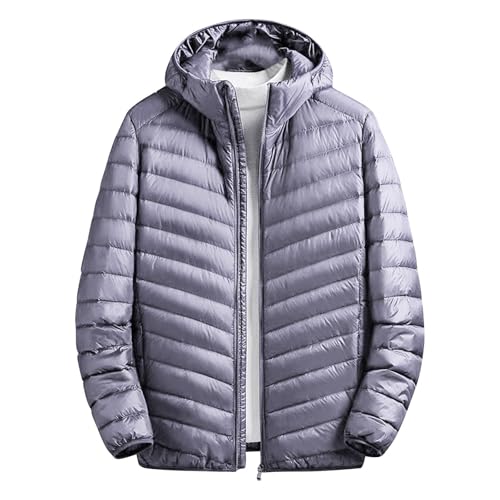 Lätt dunjacka herrar: Pufferjacka för män med huva quiltad kappa vinter dunjacka ultralätt packbara dunfyllda jackor smal passform stående krage vadderad puffer quiltade jackor, Grå, 5XL