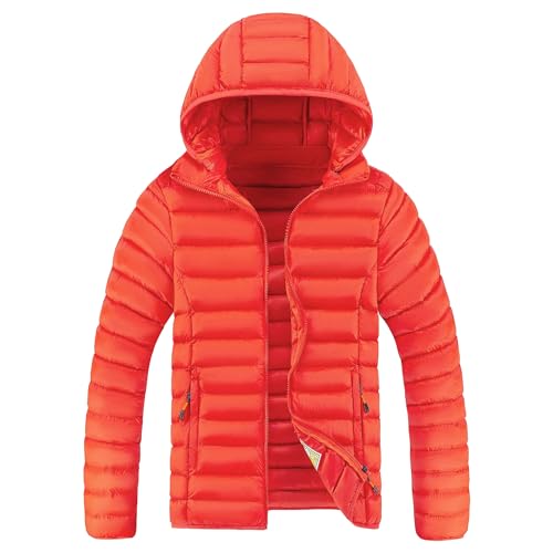 ZDJSWJ Herr lätt dunjacka varm vattentät varm vinter förtjockad fluffig dunjacka vindjacka med huva, Orange färg, XL