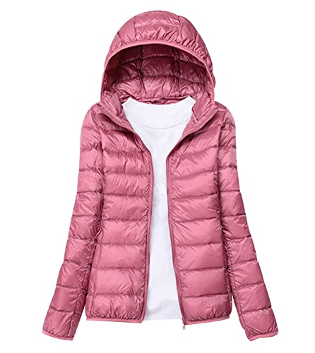 xitoio Lätt packbar dunjacka för kvinnor – quiltad pufferkappa för damer, Rosenröd, XXL