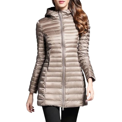 TieNew Långärmad vinterjacka, lätt vikt, varm och smal dunjacka med O-krage, ultralätt och packbar dunjacka för kvinnor, BEIgE, S