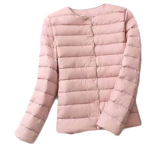 Dressnu dunjacka för damer rund hals kan bytas v-hals tunn sektion lätt, Rosa, XL