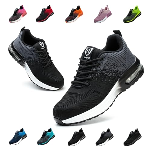 Bawalon Säkerhetsskor män kvinnor stålhätta, lätta skyddsskor andningsbara arbetsskor, Svart, 37 EU