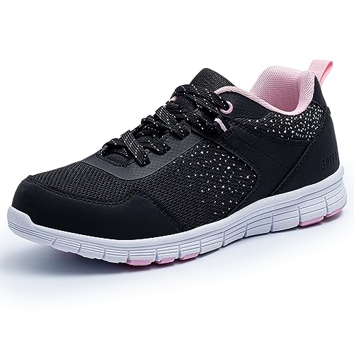 SPIEZ Anti-smashing Skyddsskor Dam Lätta, Punkteringssäkra Arbetsskor utan Stålkåpa, Andas Fashionabla Sneakers för Arbete och Vardag, 39 EU, Svart/rosa
