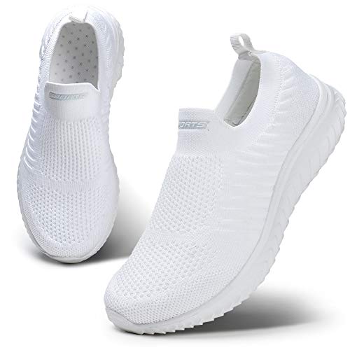 Feethit Dam Slip On promenadskor halkfria löparskor andningsbara träningsskor lätta gym sneakers, Vitt, 40.5 EU
