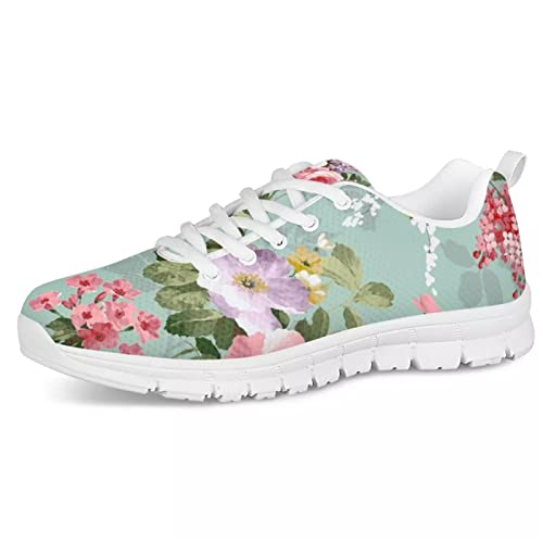STUOARTE Dam flicka sneakers vardaglig tupp mönster löparskor lätta utomhus träningsskor hållbara andningsbara sportskor, Blommor, 38 EU