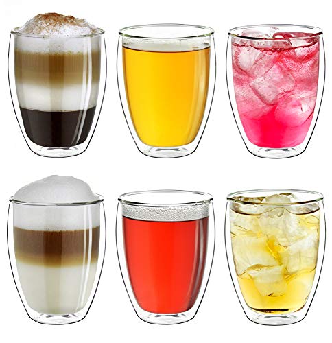 4 Latte Macchiato Glas Kaffekopp Dubbelväggig uppsättning 350 ml - Håller drycker varma/kalla längre - Värmetålig & Tål maskindisk - Perfekt presenterat