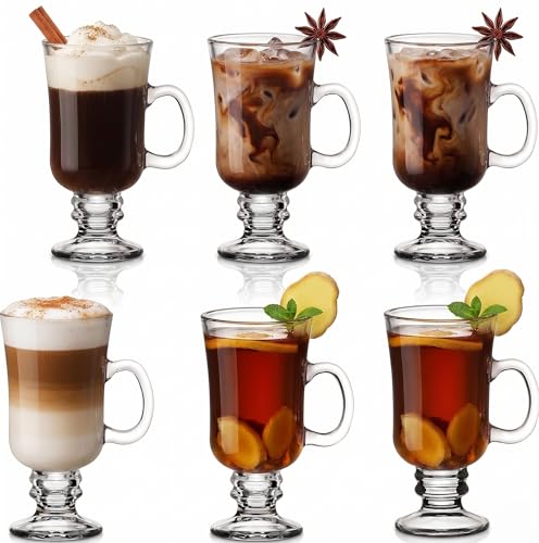 6 irländska kaffeglas med handtag och 6 skedar i rostfritt stål (gratis) latte macchiato-glas