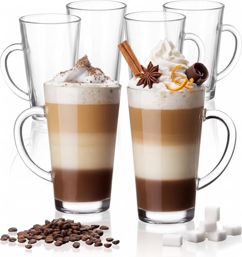 Platinux Irländska kaffeglas set med handtag 270 ml (6 delar) latte macchiato glas kakao kaffeglas