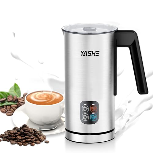 YASHE Mjölkskummare, 240 ml elektrisk mjölkskummare, 4-i-1 mjölkskummare av rostfritt stål, non-stick beläggning, för latte macchiato, cappuccino och kakao, snabb och lätt att rengöra