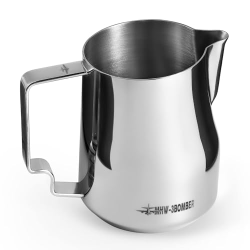 MHW-3BOMBER mjölkskummande kanna 450 ml/17 oz mjölkskummare kopp espresso ångkanna rostfritt stål mjölkskummare kopp barista latte konst rund pip mjölkkanna P6001S-OS