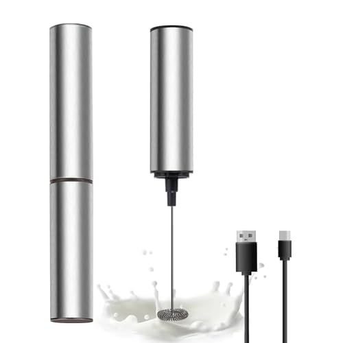 ADOV Handhållen Mjölkskummare, Rostfritt Stål Elektrisk Kaffevisp och Äggvisp, Uppladdningsbar Batteridriven Automatisk Mjölkskummare Dryckesblandare för Latte, Cappuccino, Varm Choklad, Matcha
