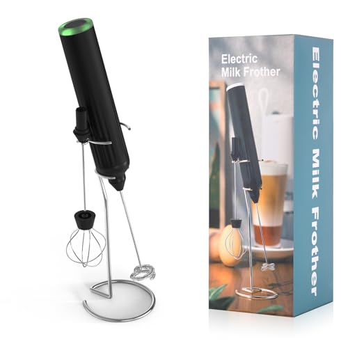 Lychico Uppladdningsbar mjölkskummare handhållen skumtillverkare med rostfritt visp och stativ, kraftfull 2 huvuden 3 hastigheter snabb handhållen dryckesblandare för latte, cappuccino, varm choklad,
