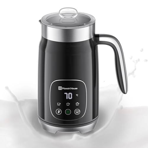Maestri House mjölkskummare, 4-i-1 variabel temp och skumtjocklek mjölkskummare och ångkokare, 400 ml smart beröringskontroll skummakare, minnesfunktion för latte, cappuccino, varm choklad, DualFro