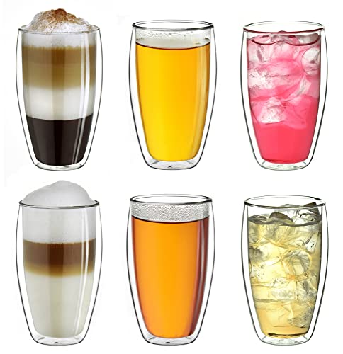 Creano DG-SH Dubbelväggigt termiskt glas 250 ml dubbelväggigt glas också lämpligt för små händer dubbelväggiga kaffeglas latteglas set med 6
