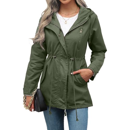 Lättviktsjacka Dam Utility Dragsko Midja Luvtröja Zip Up Windbreaker Jacka Höst Casual Kappor med fickor