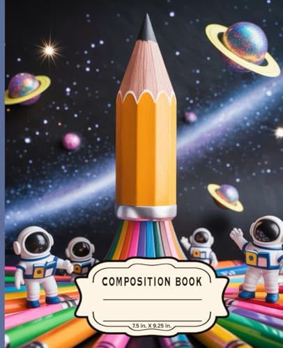 Pencil Rocket Launch | A Composition Notebook | Wide-Ruled | 7.5 x 9.25 inches | 120 pages