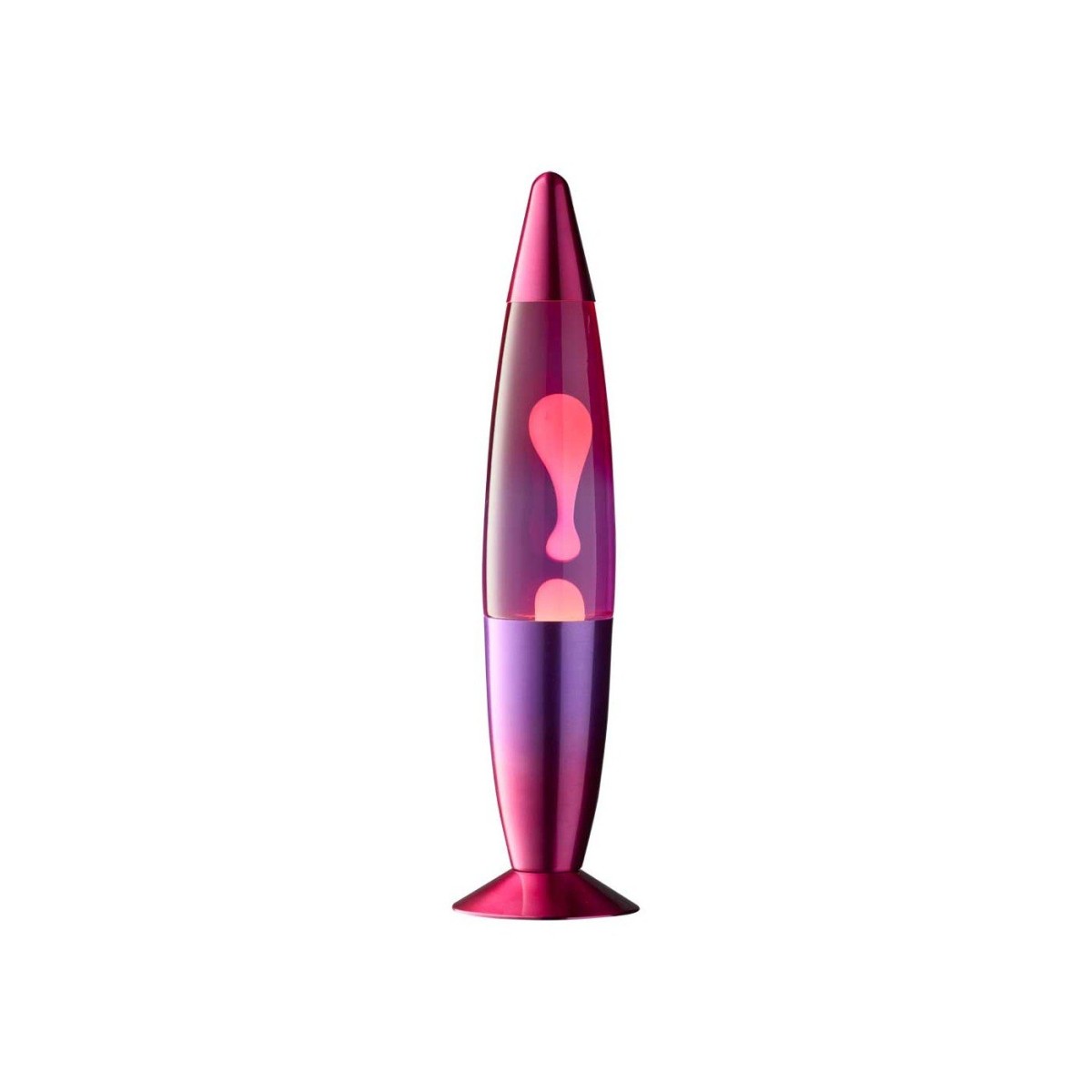 Fisura – Lava lamp “rode degradé”. Chromen basis en fles die van paars naar wit degradeert. Retro lamp voor ontspanning met vervangbare gloeilamp, afmetingen: 11 cm x 11 cm x 39,5 cm.
