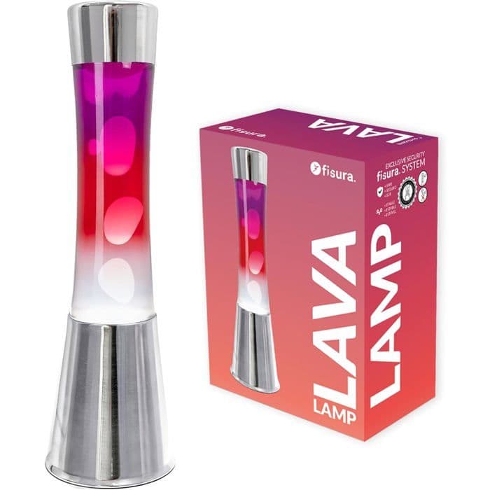 Fisura - Rosa Lavallampa. Lavallampa 30 cm med svart bas, rosa lava och klar vätska. Avslappnande lampa. 9x9x30 cm