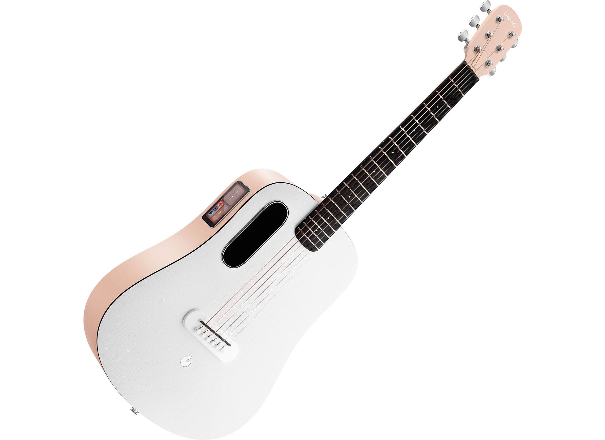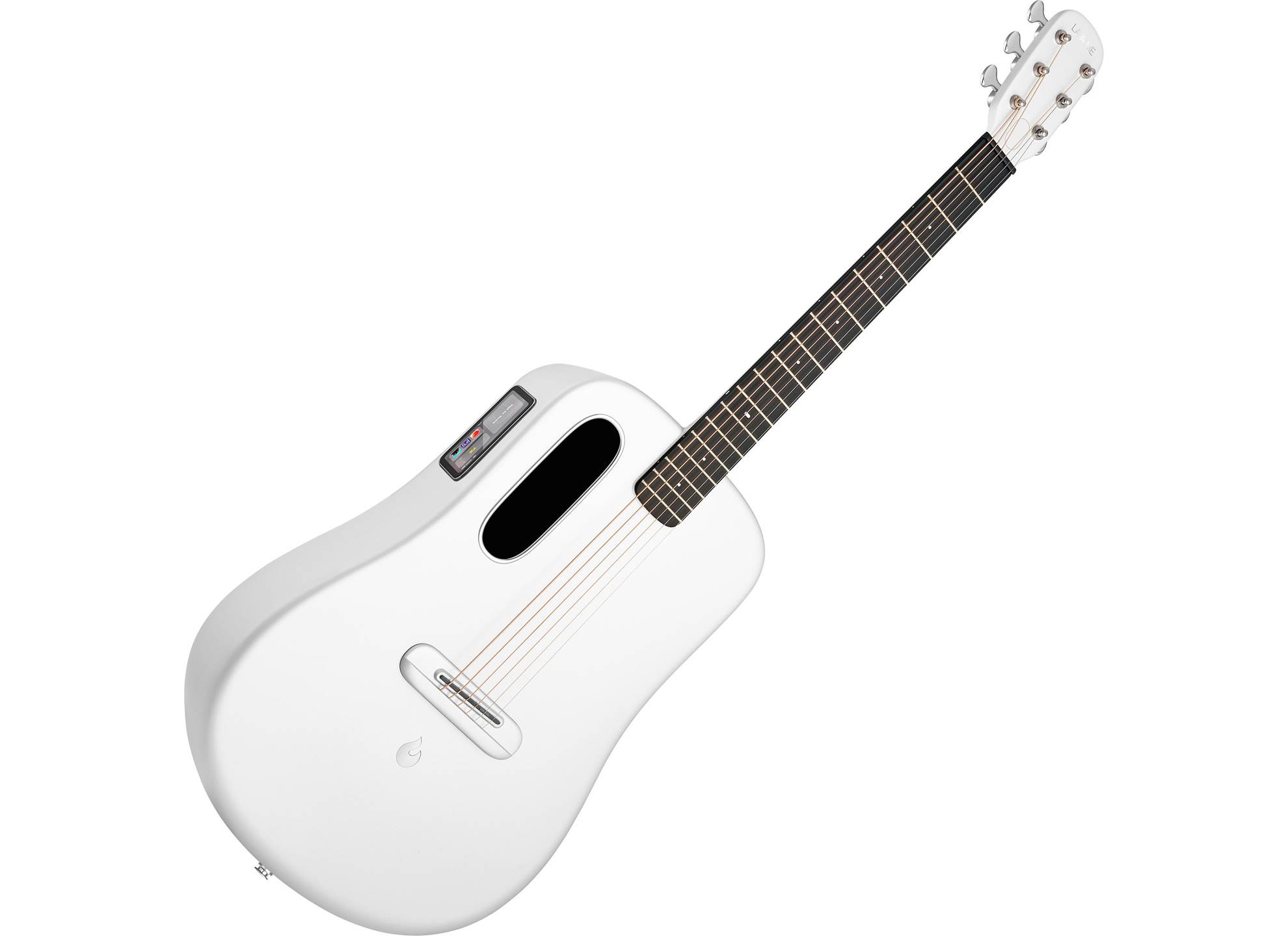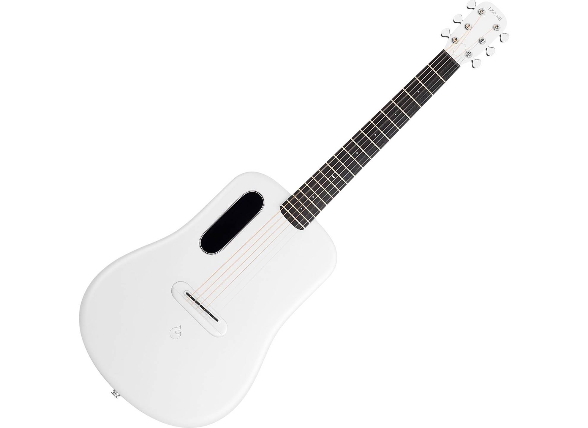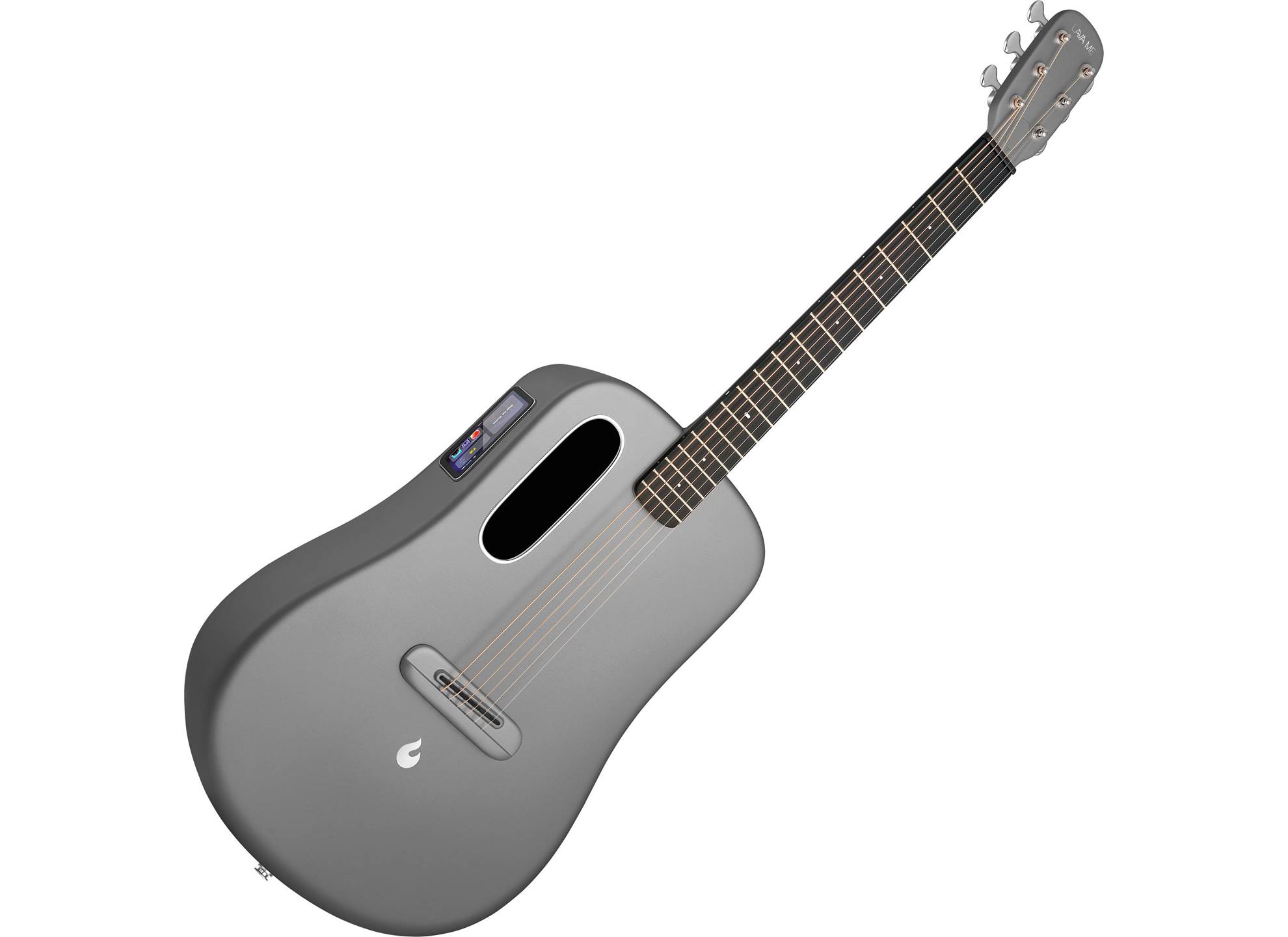 LAVA ME AIR Bärbar elektrisk akustisk gitarr i kolfiber. Nybörjarresegitarr med integrerade effekter och magnetisk pickup. Silver