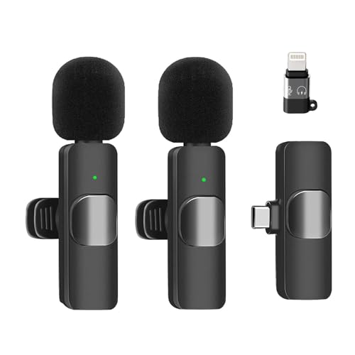 NK Trådlös mikrofon med laddningsfodral - Lavalier trådlös mikrofon för iPhone/Android, Plug & Play, 2-pack mikrofoner för Tiktok/Twtch/Youtube/Vlog-inspelning, brusreducering, ingen app