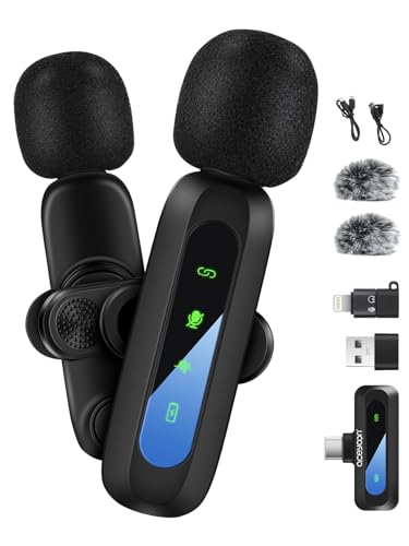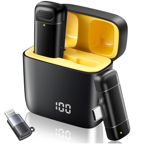 VOVIGGOL Trådlös Lavalier-mikrofon för Smartphone iPad Android med 400 mAh laddningsfodral, Plug & Play mini-mikrofon lapellmikrofon för videoinspelning YouTube, Live Stream, TikTok, Vlog, intervju