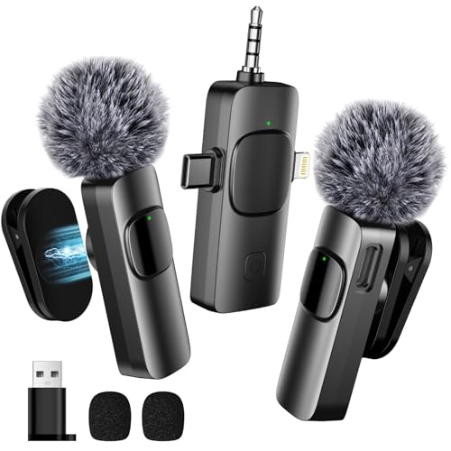 Hefty Lavalier mikrofon trådlös för iOS, trådlös minimikrofon för inspelning, livestreaming, YouTube, TikTok, Facebook, brusreducering, plug and play, ingen app och Bluetooth krävs