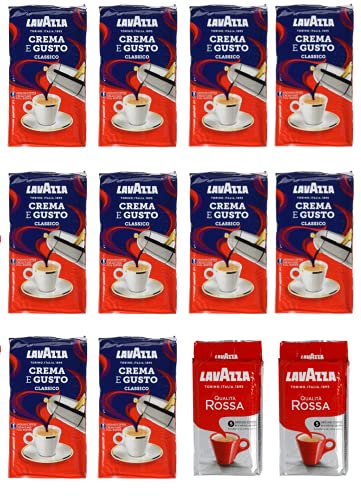 10x Lavazza kaffe Crema e Gusto Classico malet 250 g + 2x malet kaffe – kvalitet Rossa 250 g