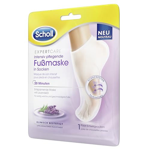 Scholl Expert intensivt närande fotmask med lavendelolja – fuktgivande vård – 1 par engångsstrumpor