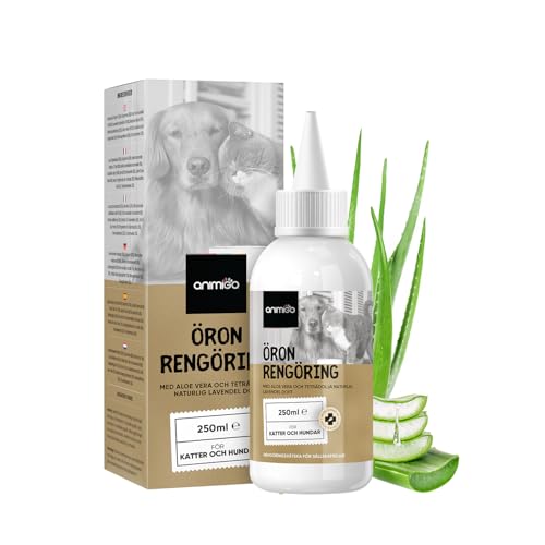 Örondroppar 250ml - Naturlig öronrengöring för hund & katt - Med tea tree-olja, lavendelolja & aloe vera - Mot öroninfektioner, klåda, svamp & bakterier - Öronvaxborttagare - animigo