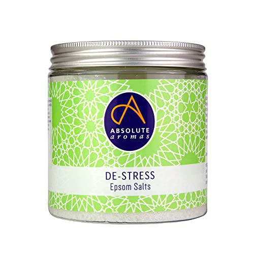 Absolute Aromas De-stress epsom-badsalt 575 g – magnesiumsulfat med 100% rena eteriska oljor – bergamott, rökelse, ros, jasmin- och lavendelolja – lindrar daglig spänning