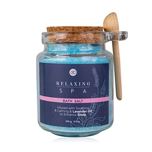 Accentra RELAXING SPA badsalt i glas med korkstängning och träsked, badkristaller berikade med lavendelolja