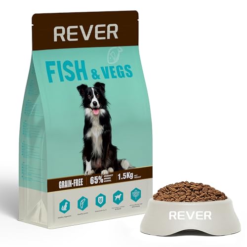 REVER EB15 torrfoder för vuxna kornfria hundar med färsk lax - hög proteinhalt med 65% ingredienser från animaliskt ursprung - hjälper till med matsmältning och hudhälsa, 1,5 kg