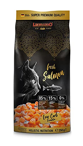 Leonardo Färsk Lax [250 g] Mat för Katter | Torrfoder Med 85% Färskt Kött | Komplett Foder för Vuxna Katter Av Alla Raser Från 1 Års Ålder