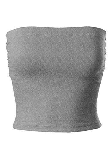 MixMatchy Women's Solid Casual Summer Side Shirring Scrunched Double Layered Tube Top Heather Grey S