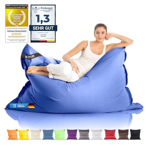 Original LAZY BAG Inomhus och utomhus Beanbag XXL 400L Giant Beanbag Sittdyna Fåtölj för barn och vuxna 180x140cm (Nylon, Blå)