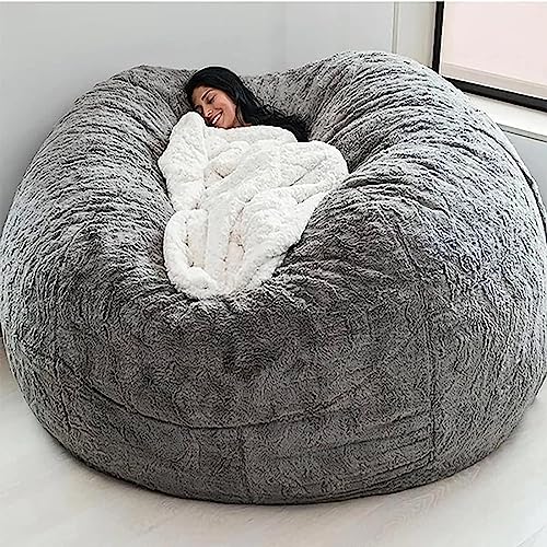 NIBHZ Bean Bag Cover, Vuxen Fluffy Chair Giant Bean Bag Cover Utan Fyllning Giant Soffa (Ingen Fyllning) Plysch Gaming Extra Large Lazy Bag,Light Grey-180cmx90cm