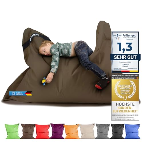 Lazy Bag Original inomhus och utomhus Beanbag XL 250 liter Giant Beanbag Junior Cushion Armchair för barn och vuxna 160x120 (Brun)