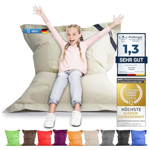Lazy Bag Original inomhus och utomhus Beanbag XL 250 liter Giant Beanbag Junior Cushion Armchair för barn och vuxna 160x120 (Beige)